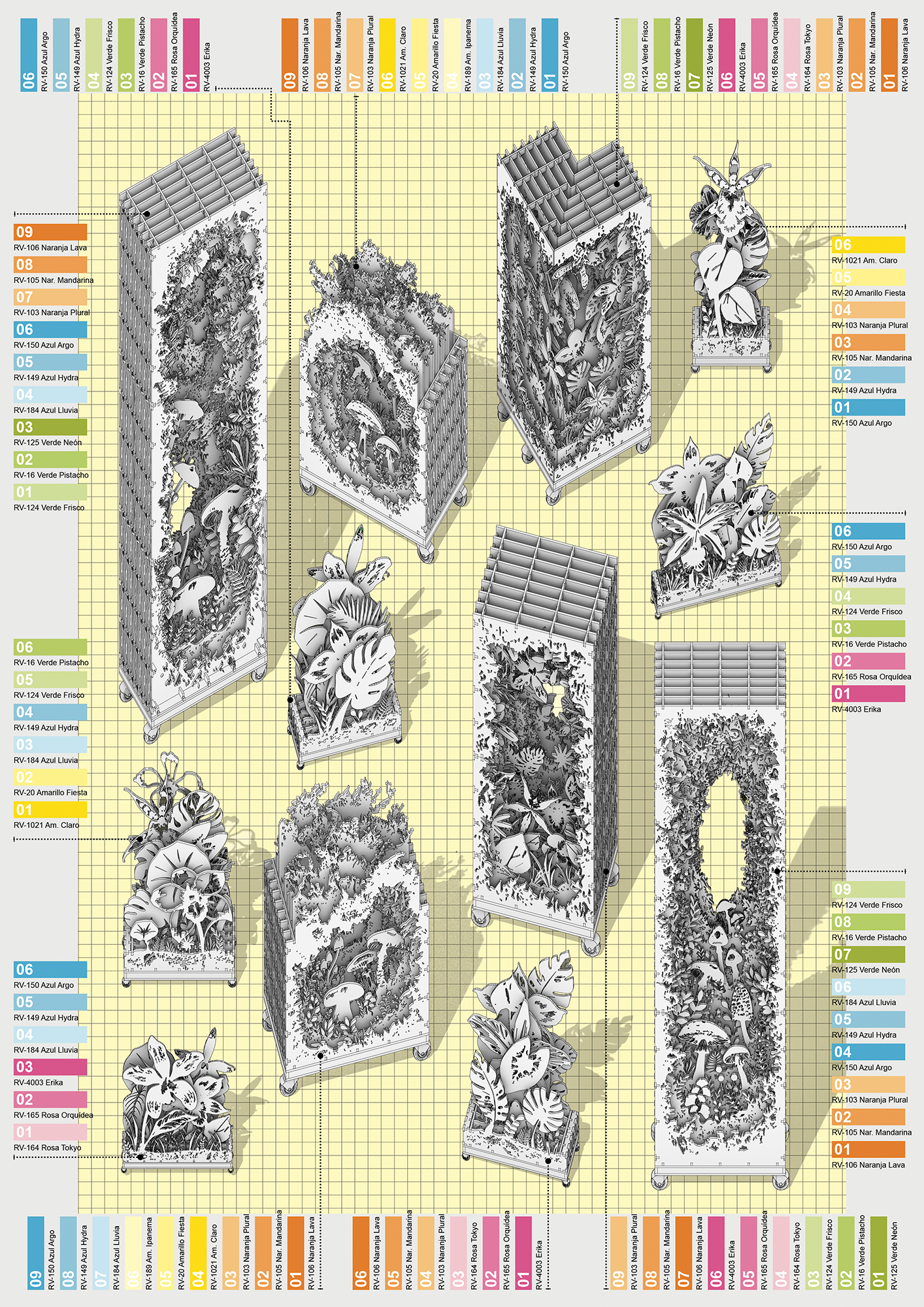 Madrid, Barcelona, Lisbon, Marbella 2025A series of 17 sculpted wooden gardens built from layered botanical forms.